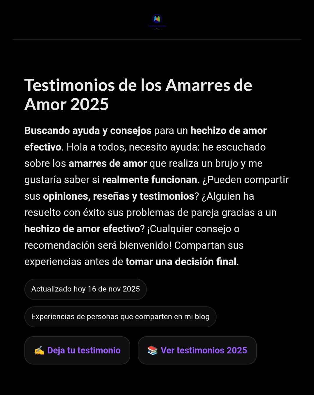 Conozco a Eugenio Galeano de Colombia. Si aún no te has decidido deberías de tener comunicación con el para hacer un amarre de amor. Tiene excelentes referencias de los amarres de amor que realiza. Puedes leer de sus trabajos en este blog.